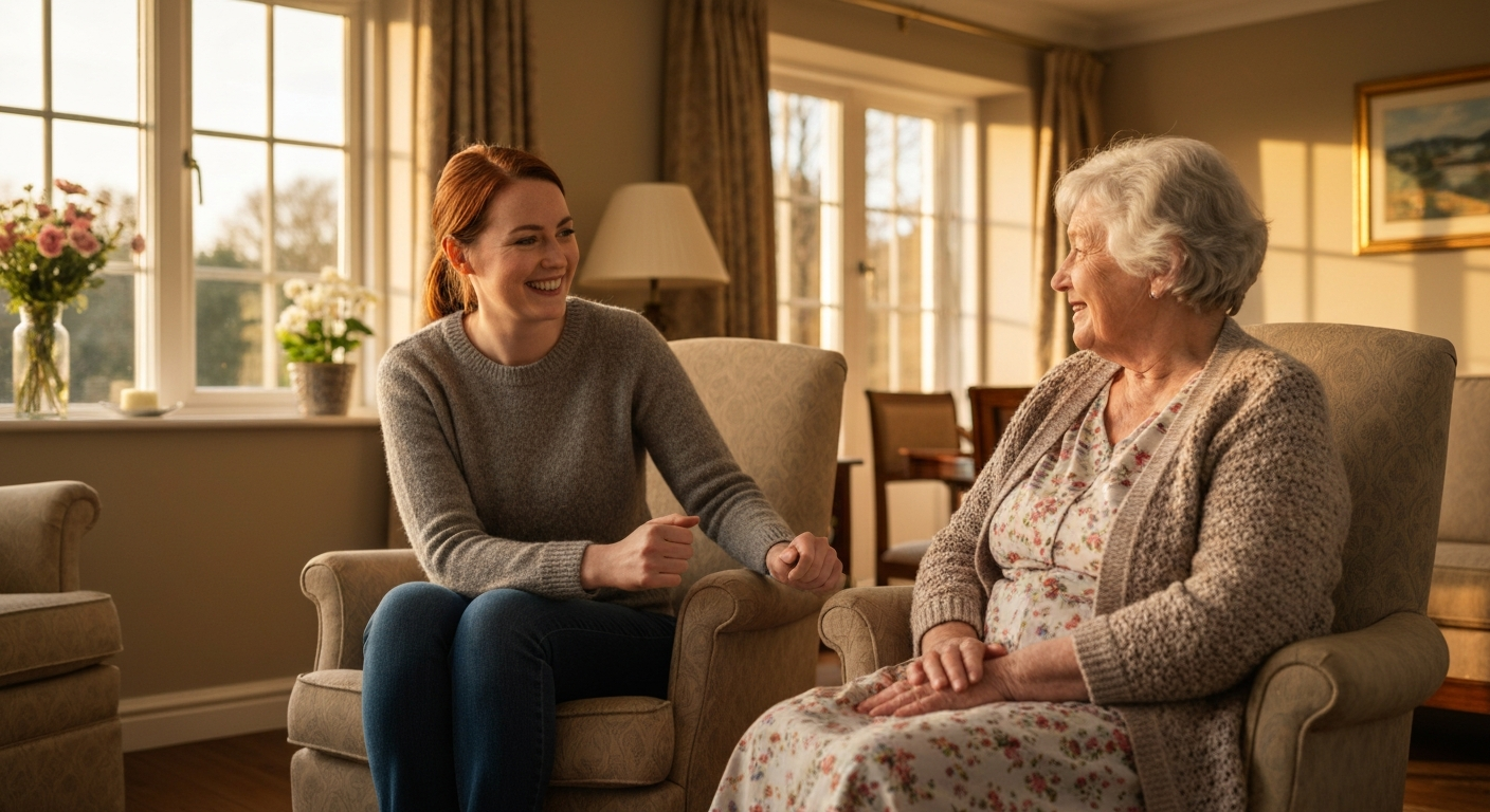 Live-in care means a professional, trained carer moves into your home and provides continuous support throughout the day and night. Unlike visiting home care — where carers come and go at scheduled times — a live-in carer is always present, always available, and always familiar.